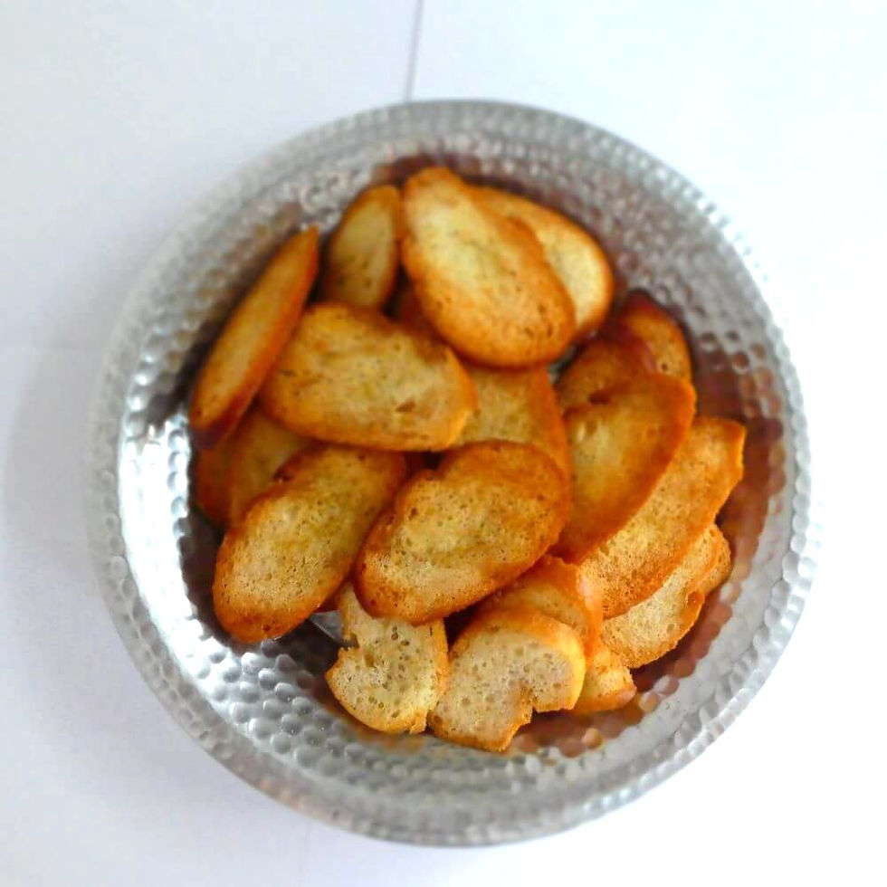 Crostini's, oftewel 'Golden Crispy Breadchips' zijn dunne plakjes stokbrood, bestreken met olie en afgebakken in de oven. Zelf bedacht, in onze eigen keuken gemaakt en niet te stoppen lekker. Je kunt ze als snack eten, even door de humus maken of er een mooi gerechtje van maken. Er zitten +/- 45 stuks in een zak van 220 gram. Ben je een echte fan? Bestel dan de grote zak van 700 gram, ongeveer 165 stuks.